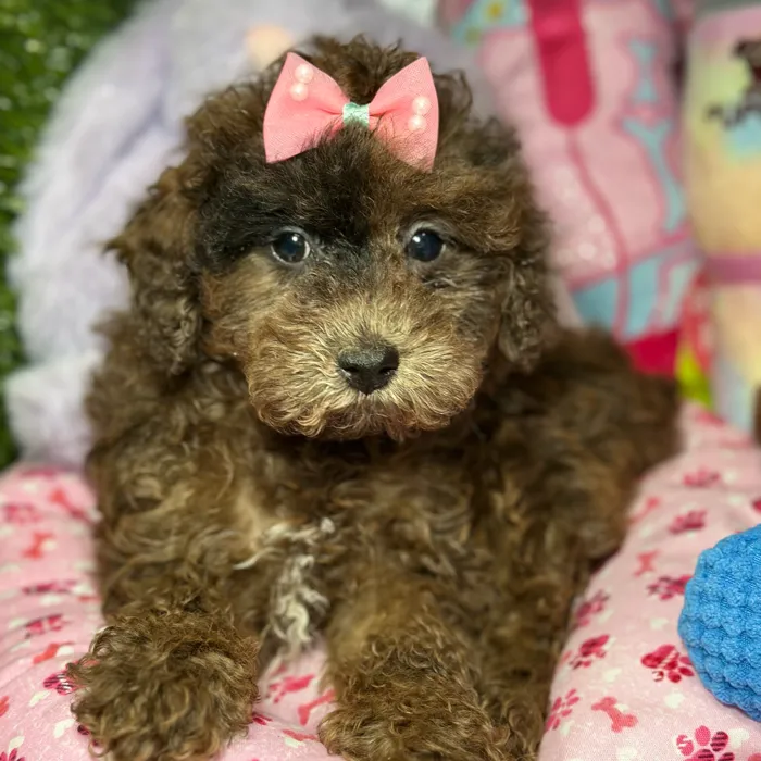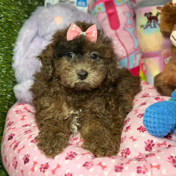 Coco is an exquisite purebred Toy Poodle with a lush, curly deep-brown coat and a bright, inquisitive gaze. Widely regarded as one of the most intelligent breeds in the world, this little lady is not just a beautiful face—she is a sharp, eager-to-please companion who will thrive in a home that loves to engage her mind.