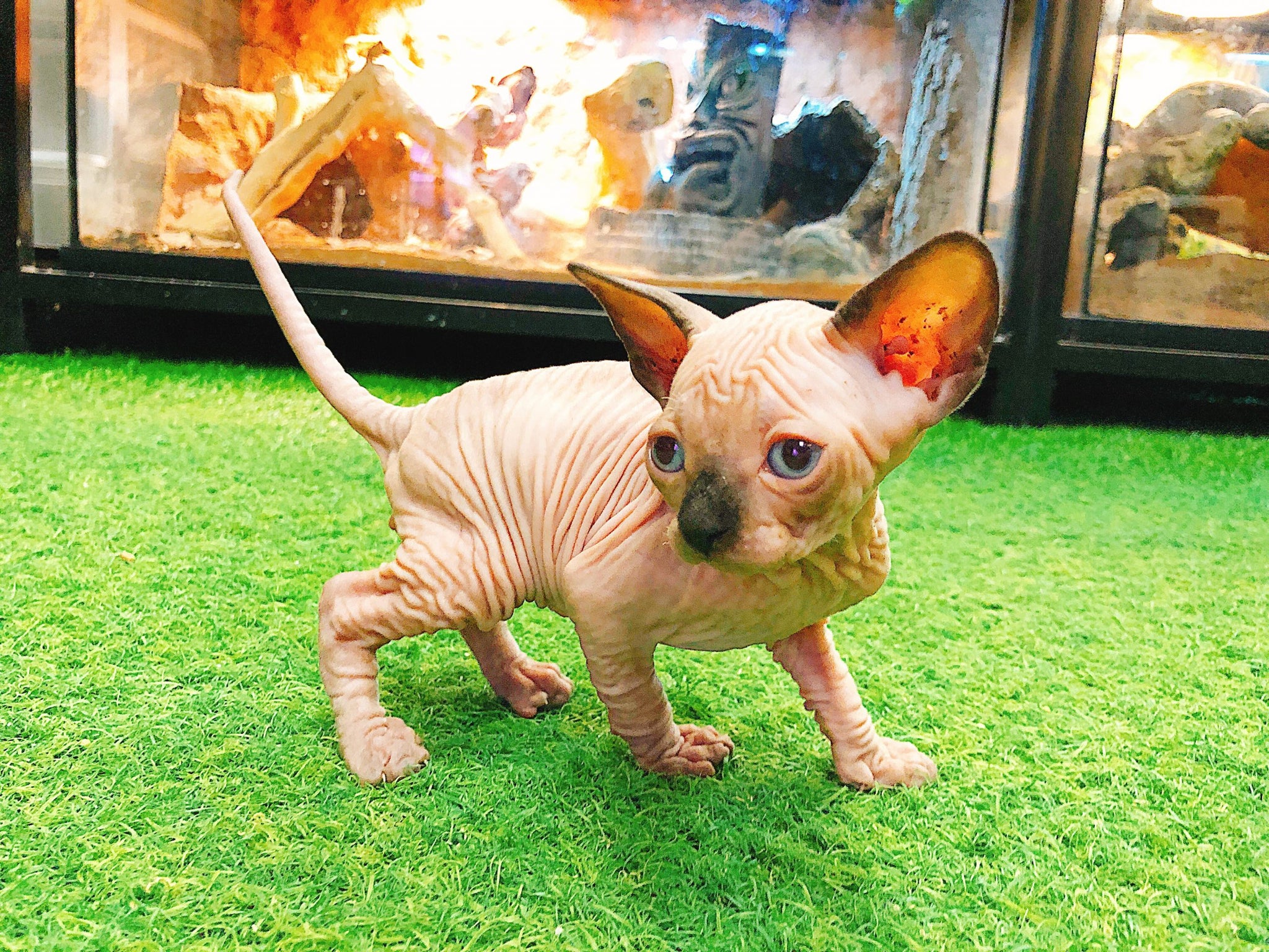 A warm heart in a velvet coat! Wrinkles is a locally bred Sphynx kitten featuring extraordinary skin folds and mesmerizing blue eyes. Highly intelligent, dog-like in his devotion, and exceptionally cuddly—he is the perfect exotic companion for a family looking for a truly unique pet.